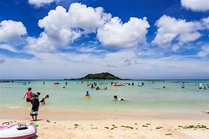 긴 모래밭 해수욕장 사람들 모여 놀고